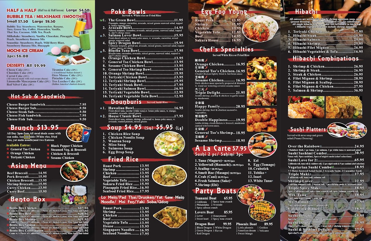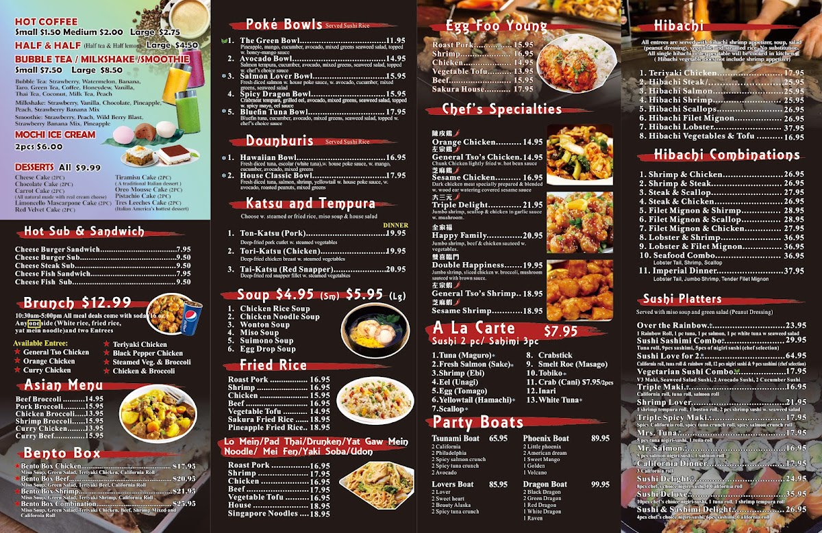 California roll inside, tuna, salmon, red snapper, white fish avocado w. little peanut butter